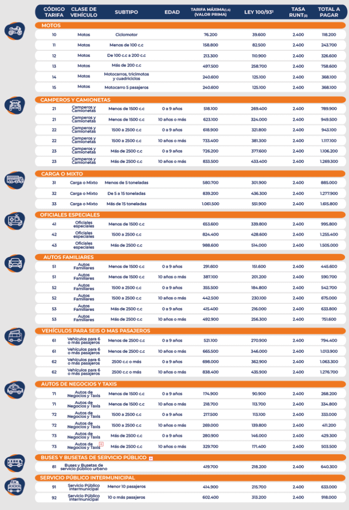 El propietario de todo vehículo automotor que circule en el país, incluyendo los vehículos extranjeros que circulen en forma transitoria por el territorio nacional. Su obligación es contar en todo momento con un Seguro Obligatorio de Accidentes de Tránsito vigente. Recuerde, que no portar el Seguro Obligatorio de Accidentes de Tránsito vigente le ocasiona una multa de 30 S.M.D.L.V, conoce las tarifas del Seguro Obligatorio de Accidentes de Tránsito aquí.